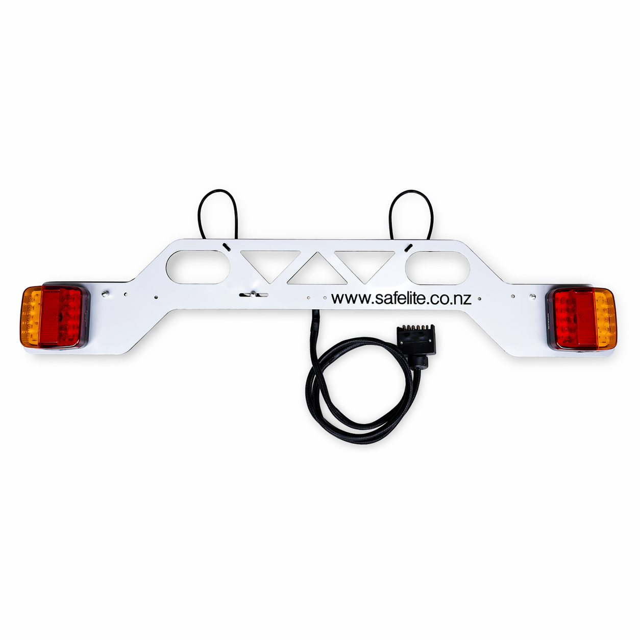 1.4 m of cable and a standard flat 7-pin trailer plug. Plugs straight into any standard NZ towbar socket. No wiring, no adapters.